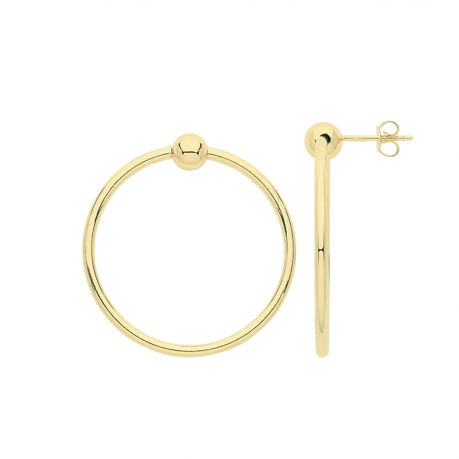 Contemporary 9ct yellow gold plain polished door knocker design hoop drop earrings.