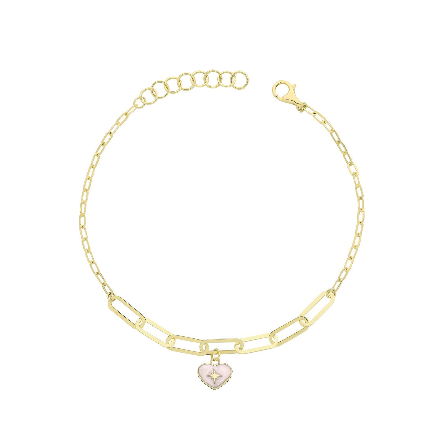 Contemporary 9ct yellow gold white enamel North Star bracelet crafted in solid 9K gold.
