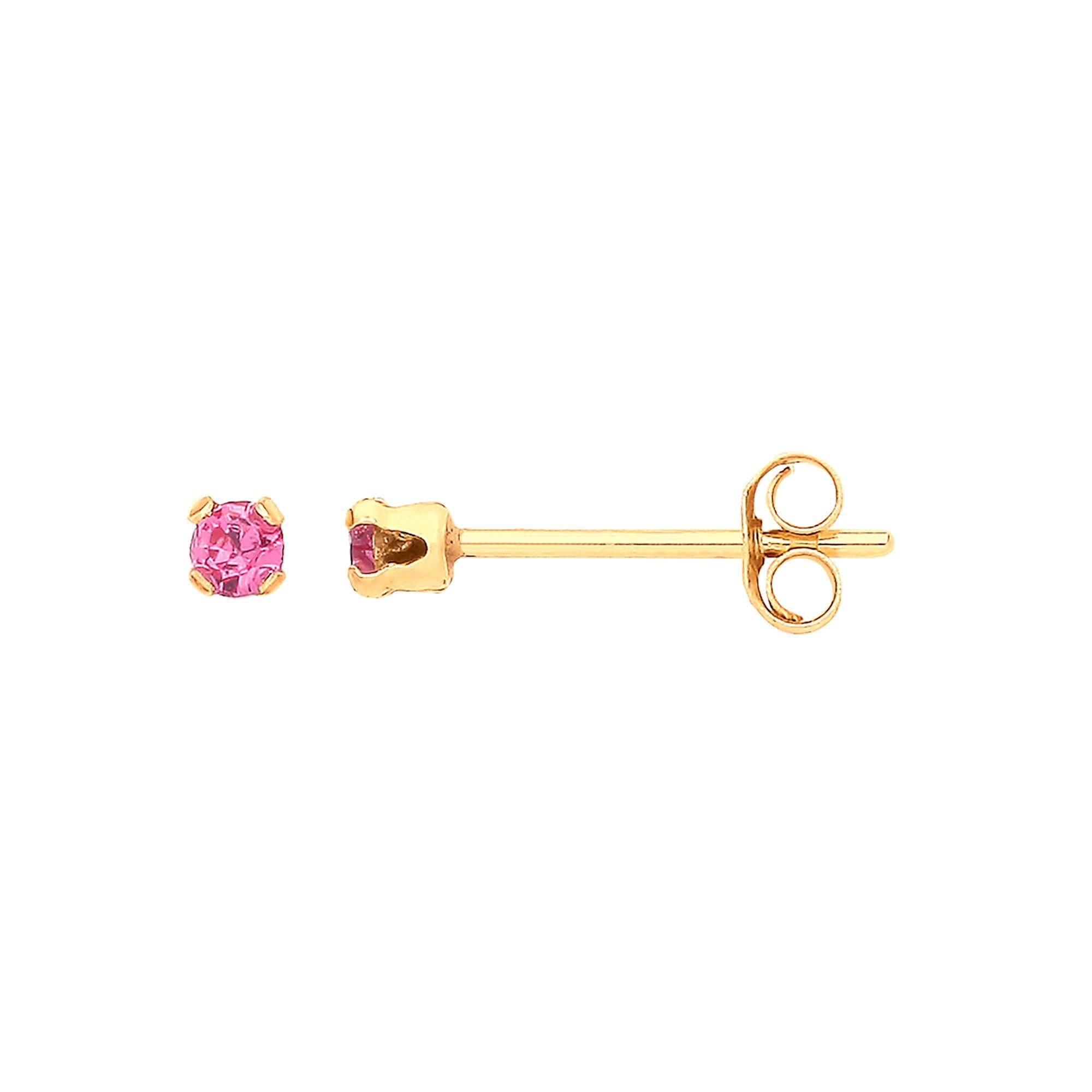 Fantastic value these dainty 9ct yellow gold solitaire stud earrings are claw set with pink Austrian crystal stones.