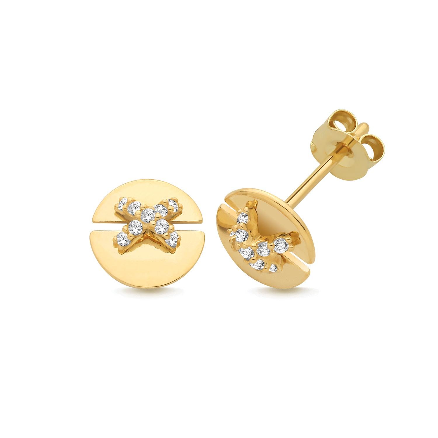 Kiss X your heart round circle stud earrings pave set with cubic zirconia stones.