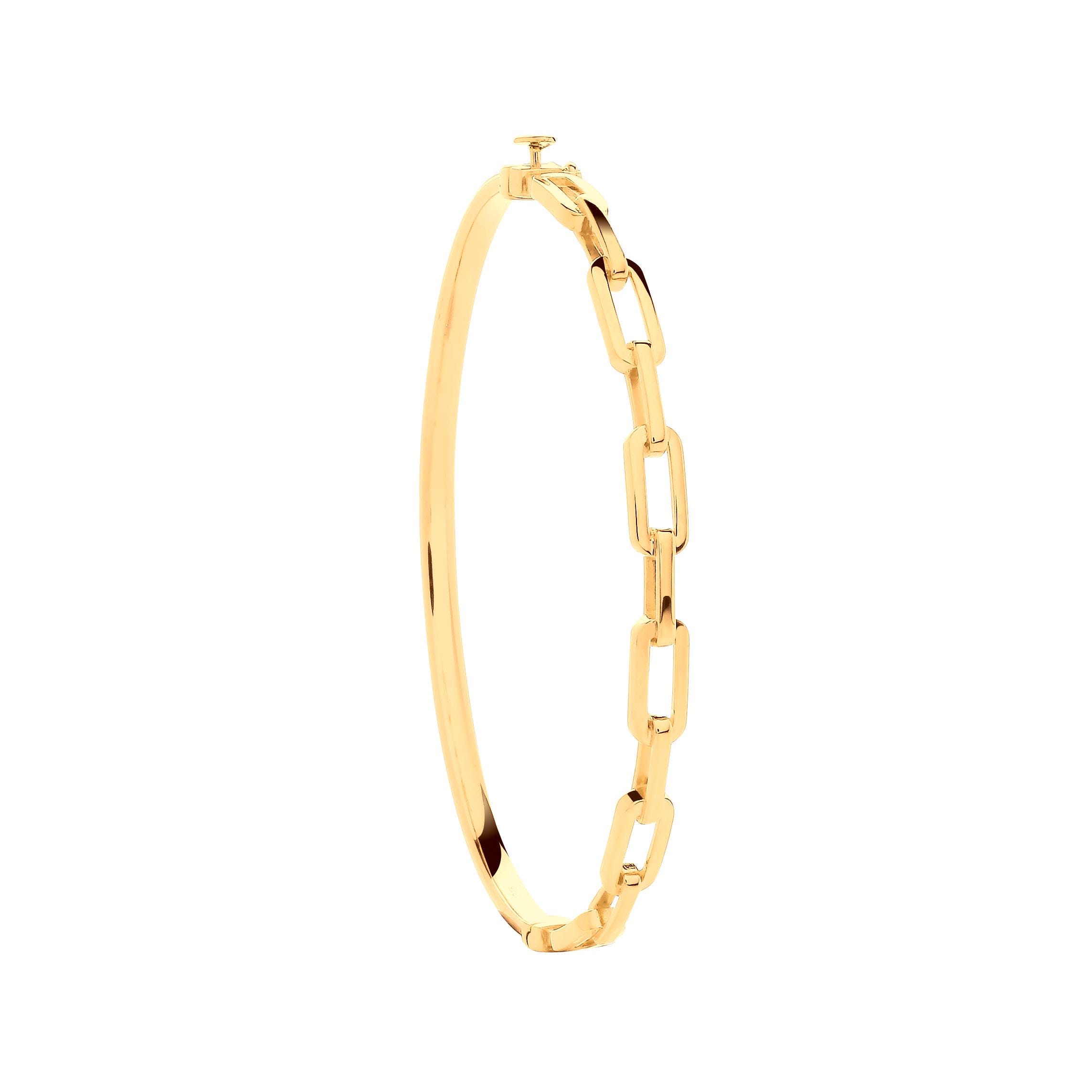 A modern 9ct yellow gold contemporary ladies paperclip link design bangle.