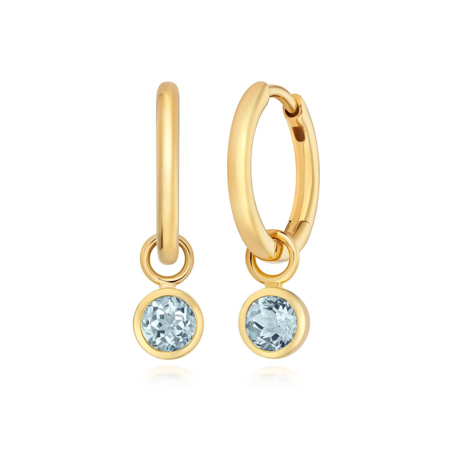 Pretty 9K yellow gold SINGLE bezel set real Aquamarine earring charm for hoop earrings. Hoop NOT included (pictured for illustration purposes only).