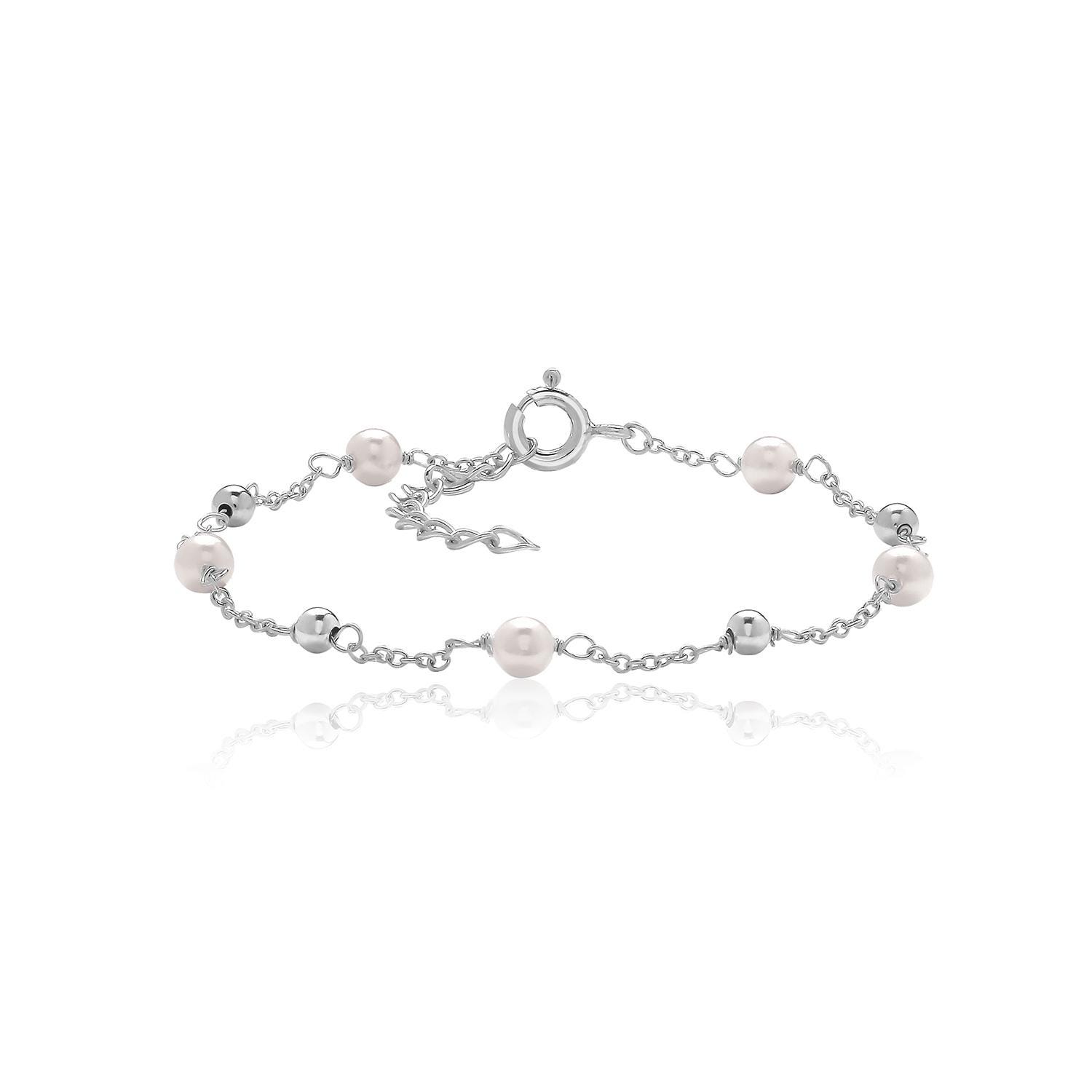 Shimmer with this ravishing pearl chain link bracelet, crafted in rhodium plated 925 sterling silver.
