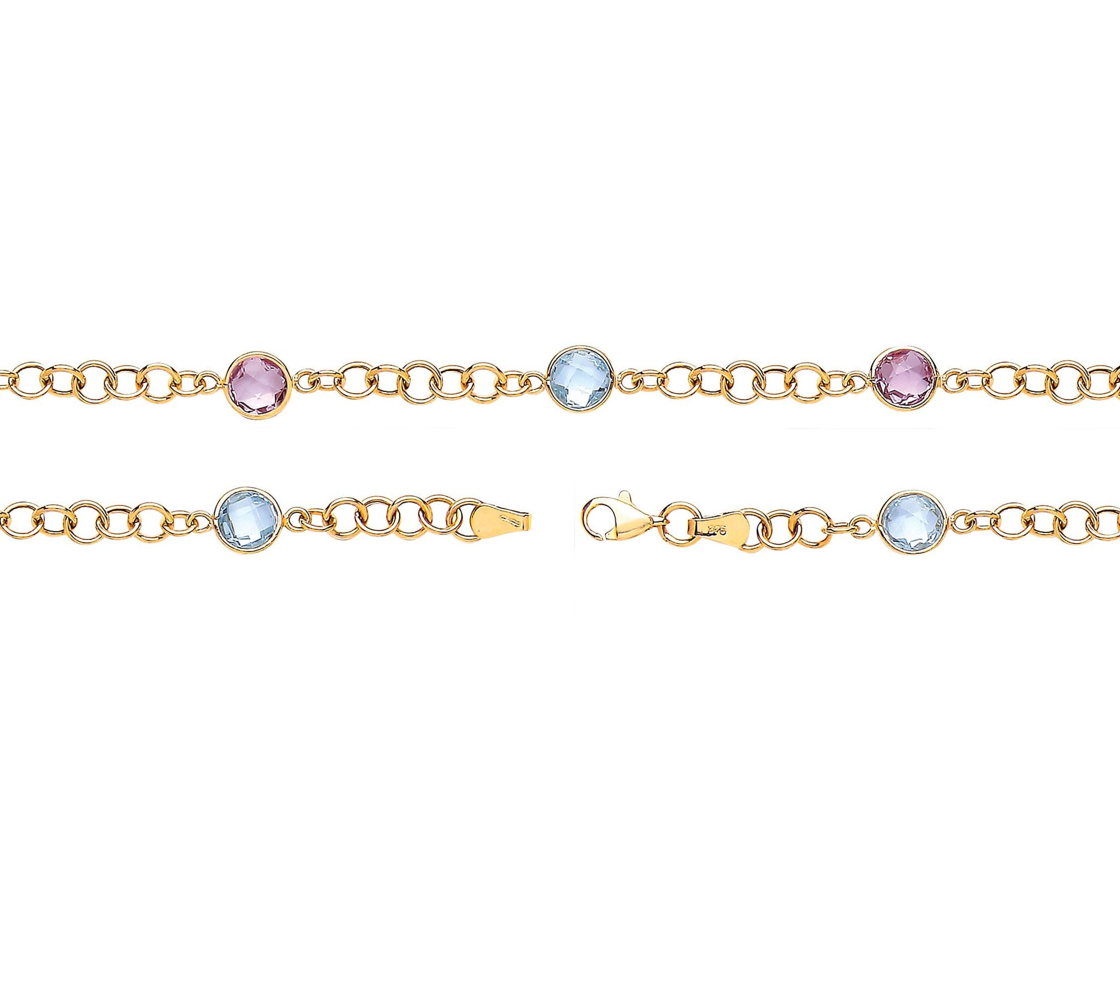 Gorgeous 9ct yellow gold bracelet with round cut gemstones of purple amethyst and blue topaz.