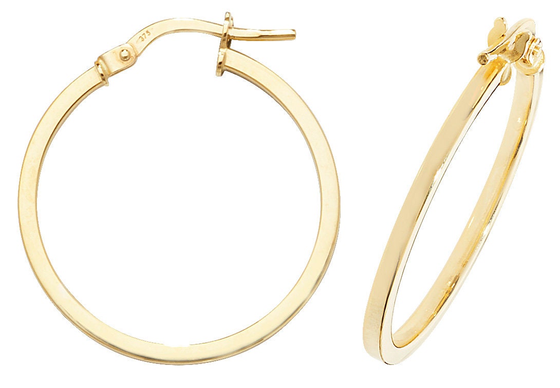 A pair of modern 9ct yellow gold plain 1.4mm wide flat tube hoop earrings.