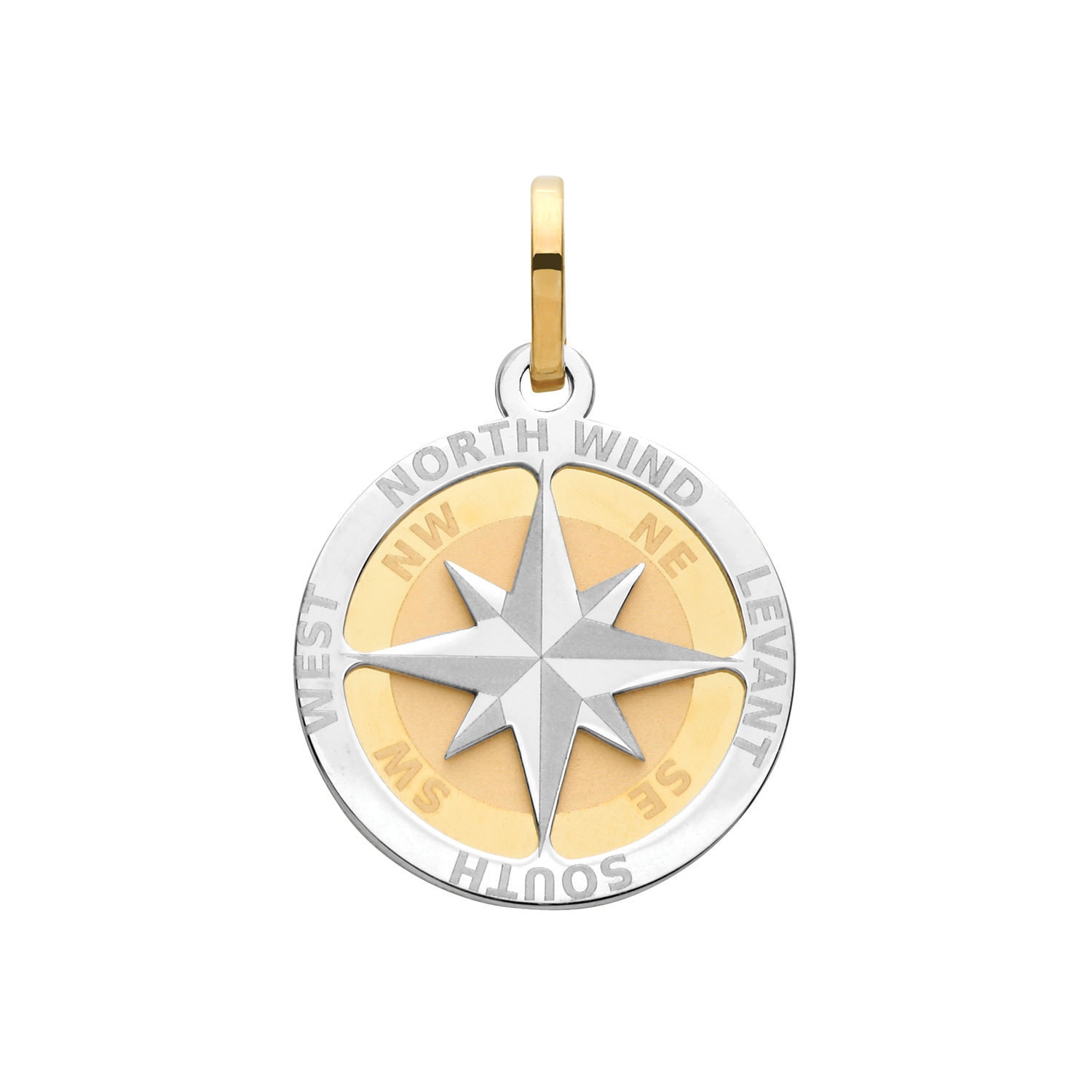 Contemporary compass rose design pendant crafted in 9ct yellow and white gold.